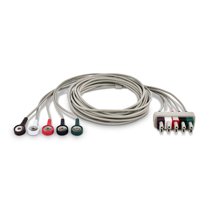 LW-2300051/5A - 5-Lead Set, Snap to Philips/Twin-pin AAMI Shielded (RA/LL/LA/RL/C), White, Green, Brown, Red, Black, 51in. / 1.3m. Click here for more info